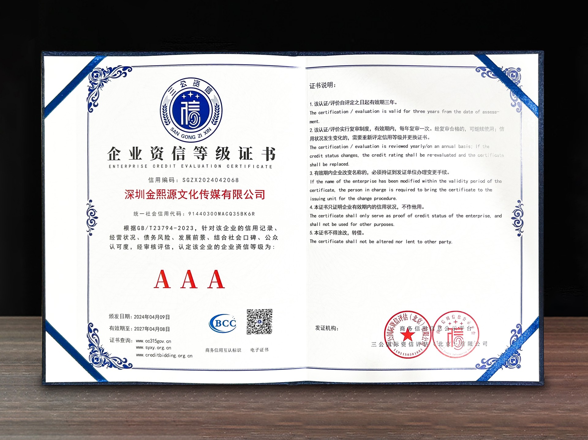 企业资信等级证书