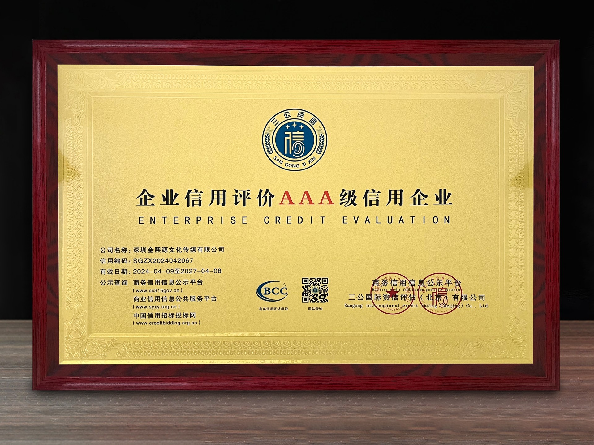 企业信用评价AAA级信用企业